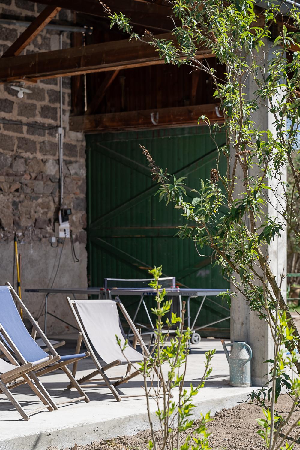 Sous le grand préau extérieur, tout devient possible : repas à rallonge, soirées cools et rires en cascade ou tournois improvisés de ping-pong.